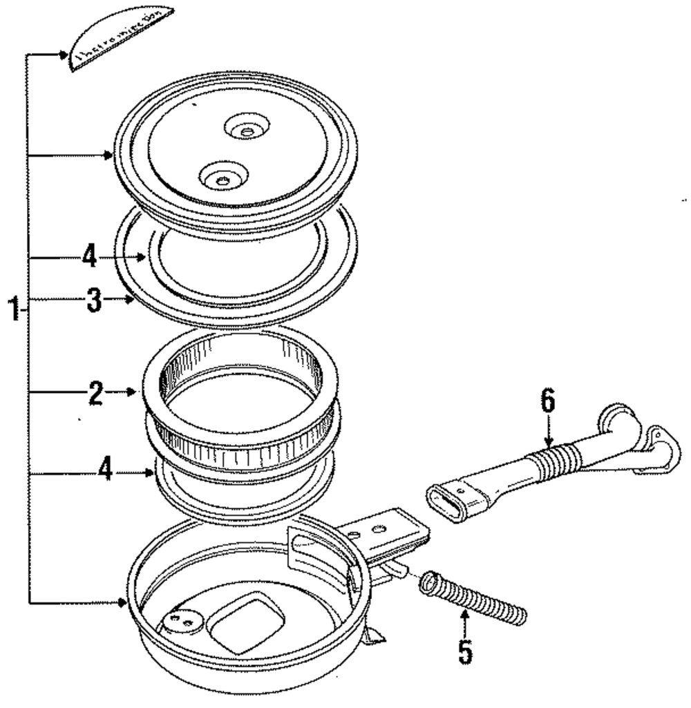 6 cylinder, 1987-89, air cleaner cover. 6 cylinder, 1986-89, lid.